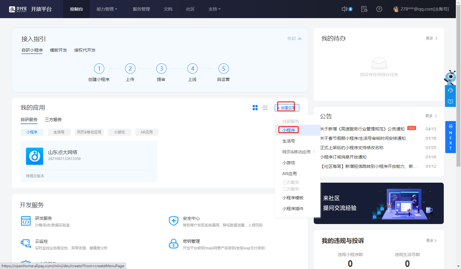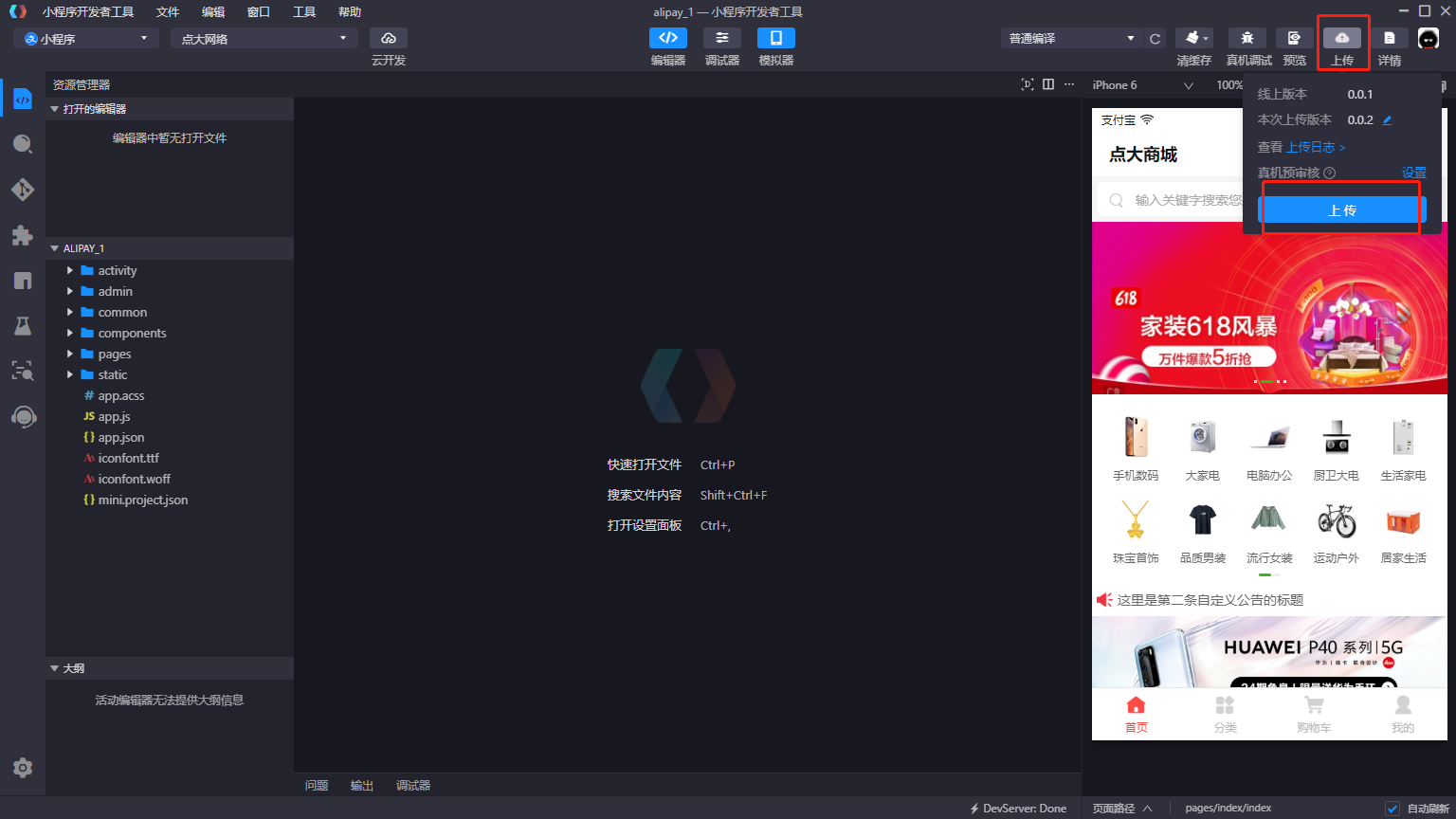 然后下载小程序代码包,使用支付宝小程序开发者工具上传代码,提交审核