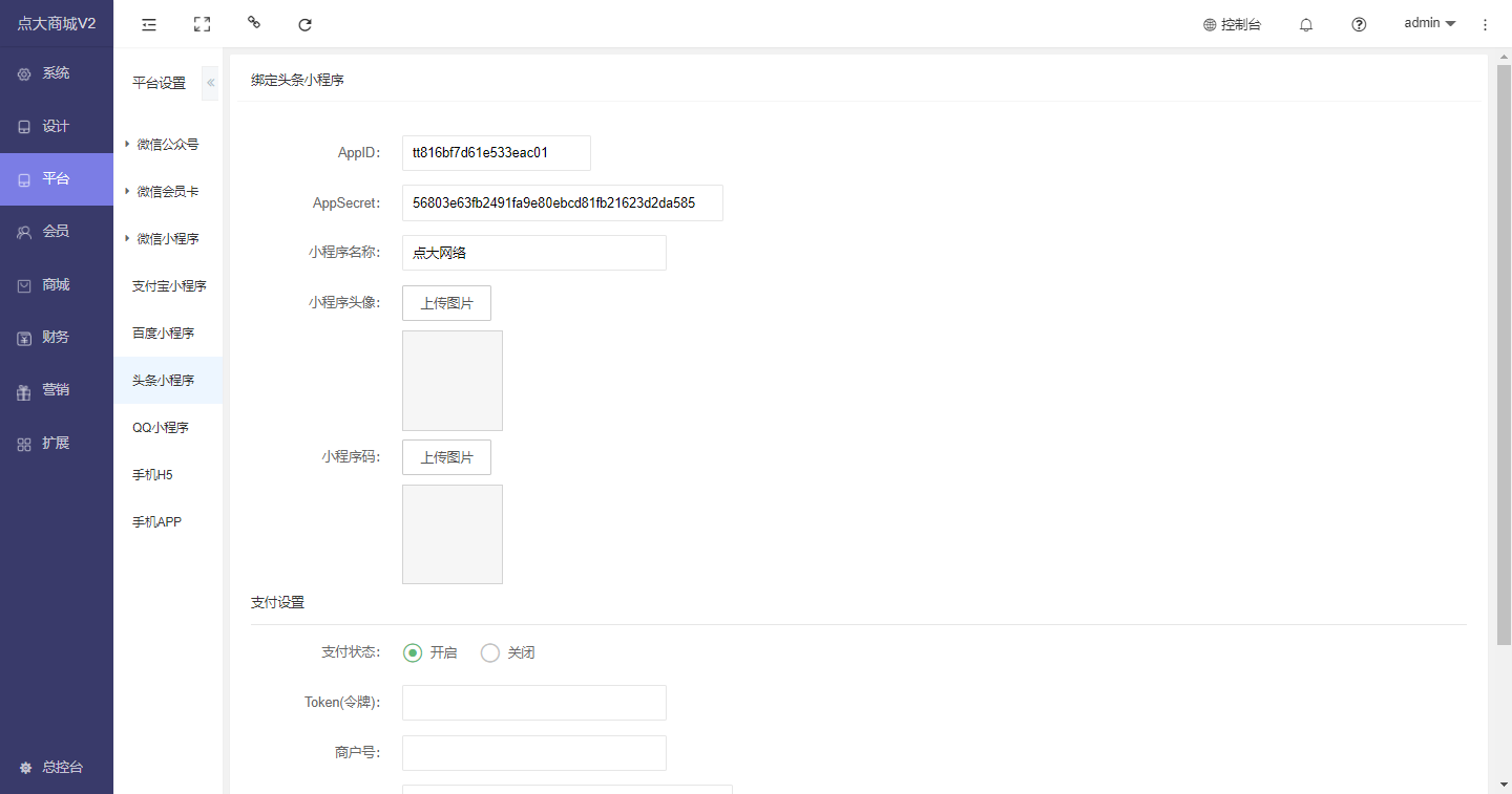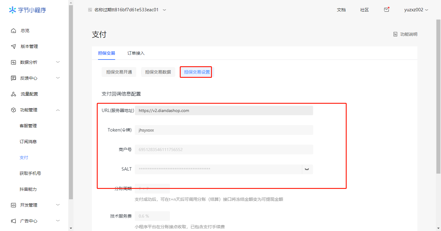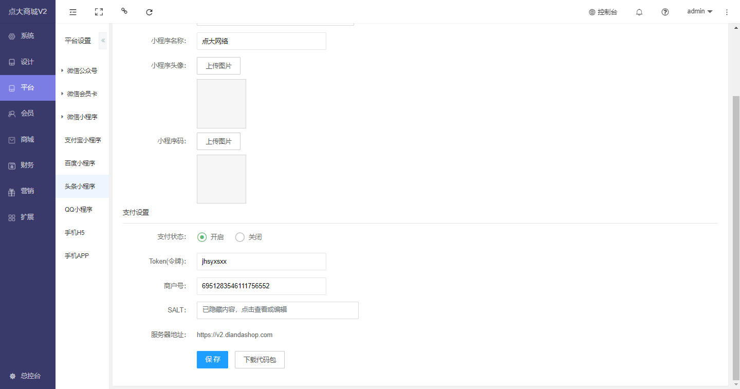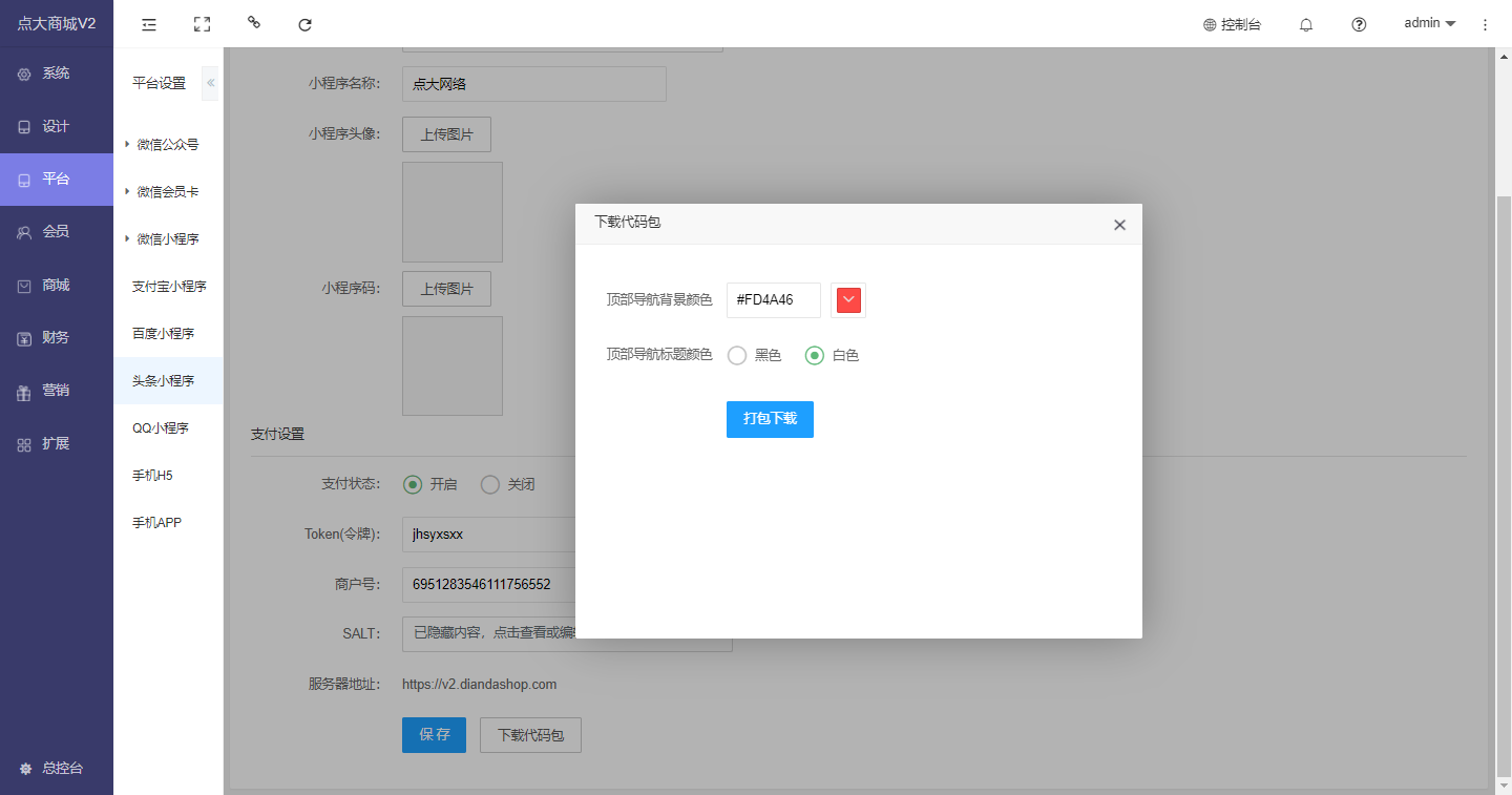 在开发管理-开发设置中填写服务器域名,并将AppID AppSecret等信息对应填写到商城后台