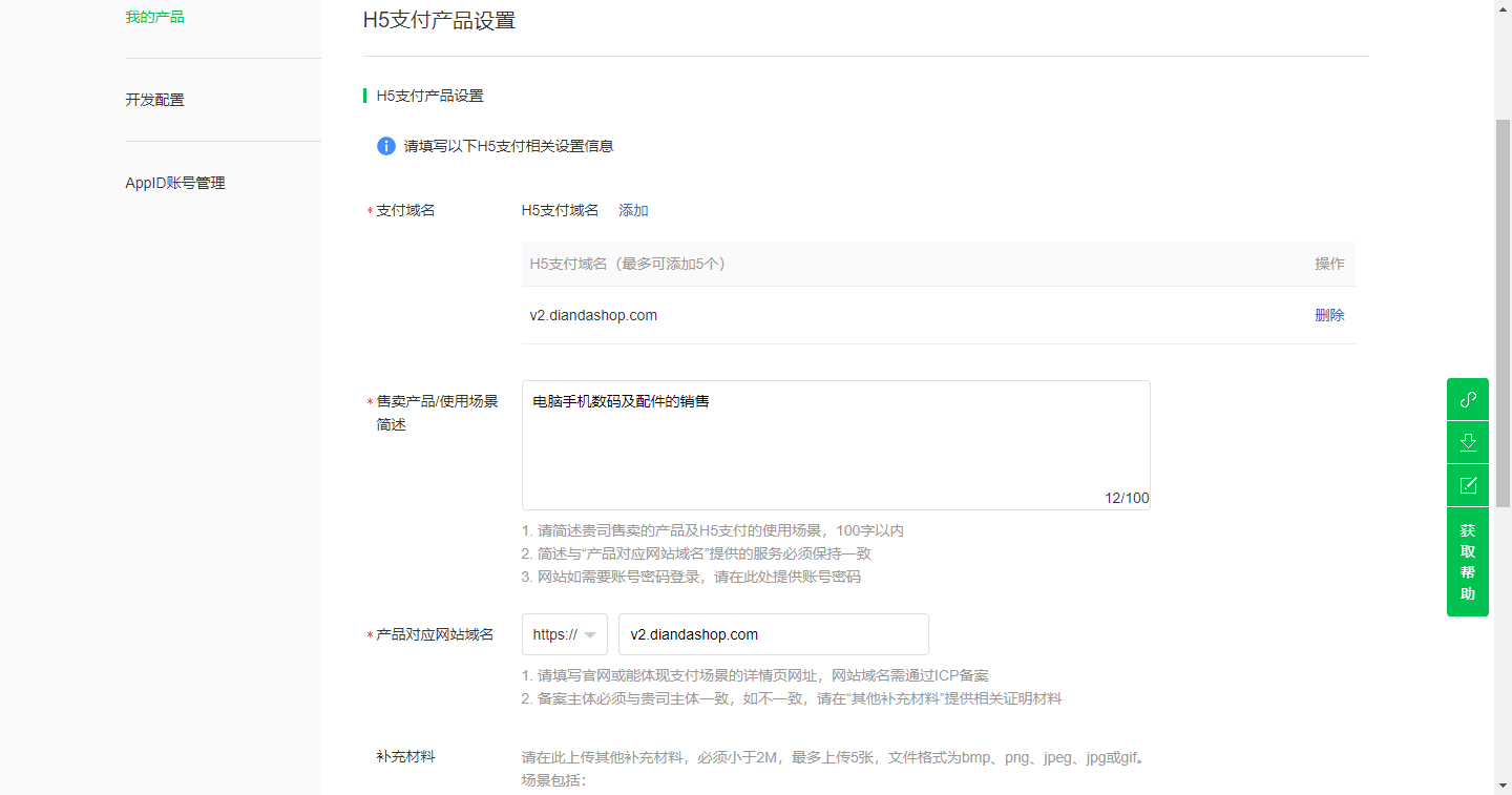 审核通过后在开放配置中设置支付域名