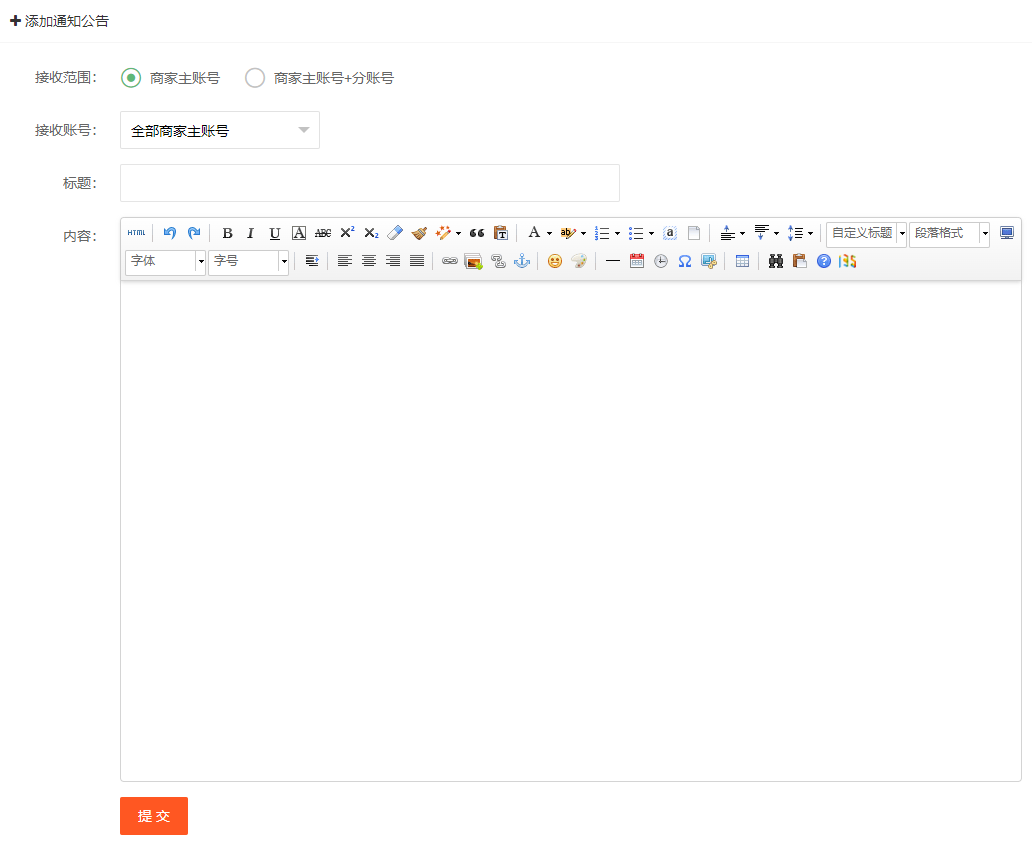 添加公告:接收范围商家主账号、商家主账号+分账号