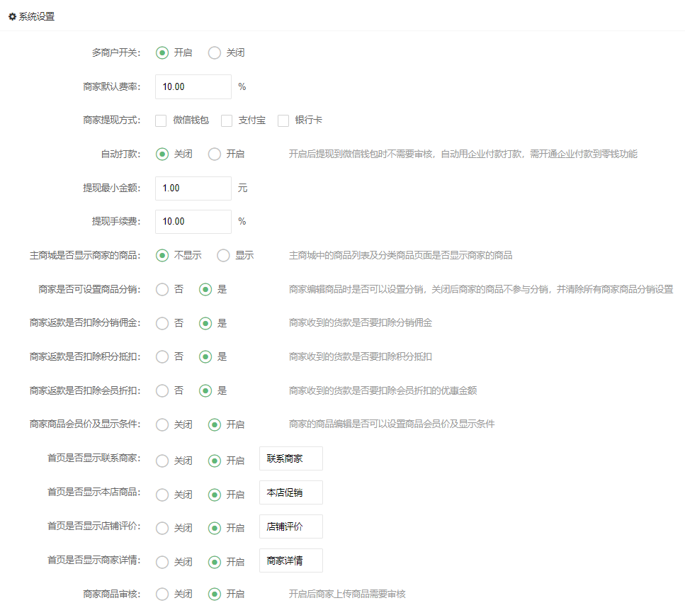用于平台对多商户进行管理,多商户支持,用户可申请入驻开店,后台审核通过后商户即可在拥有独立后台,商户后台进行上传商品、查看订单、设置拼团、秒杀、优惠券等营销活动,商家有独立后台及手机端助手,店主可接收到订单通知等消息通知